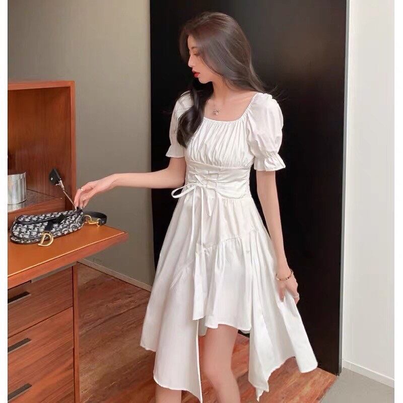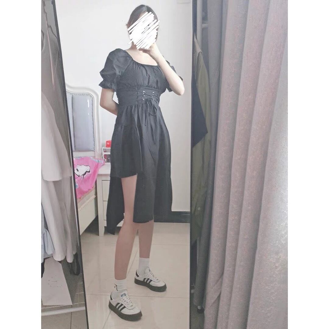 個性的なデザイン♡ おしゃれ 切り替え ハイウエスト 不規則 ワンピース