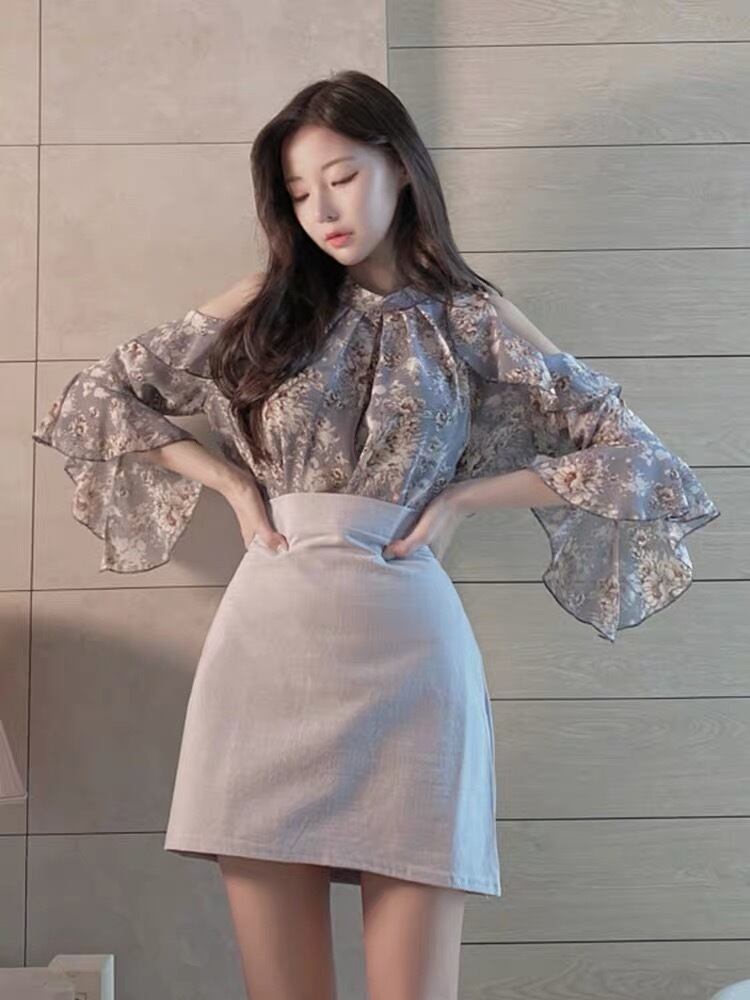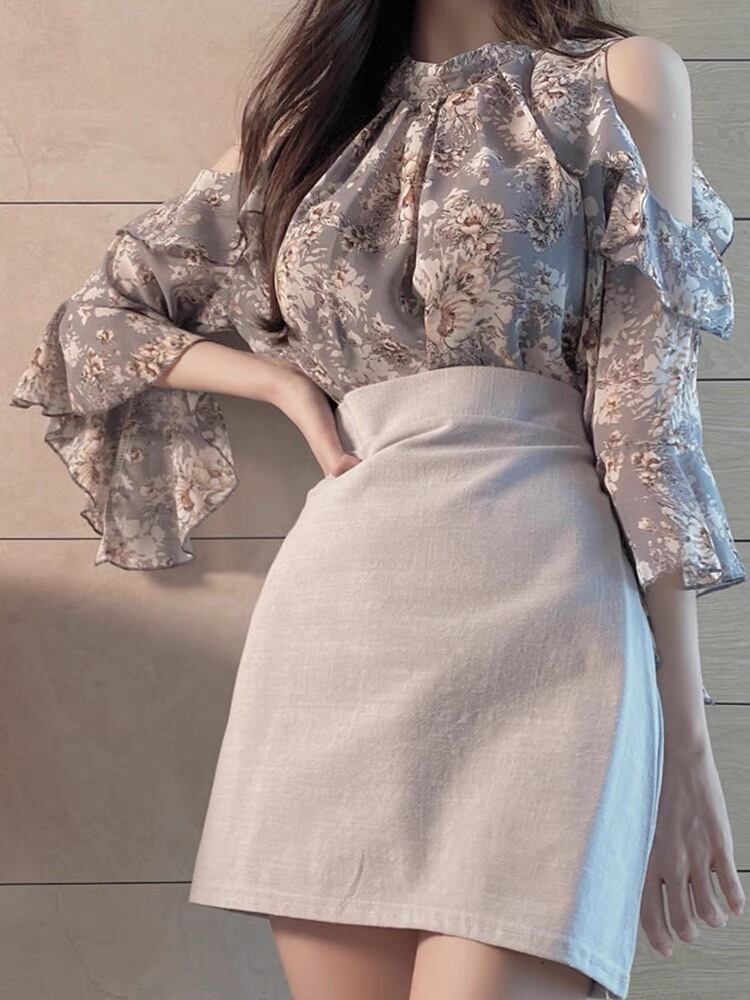 韓国デザイン♡ 花柄 オフショル シフォンブラウス