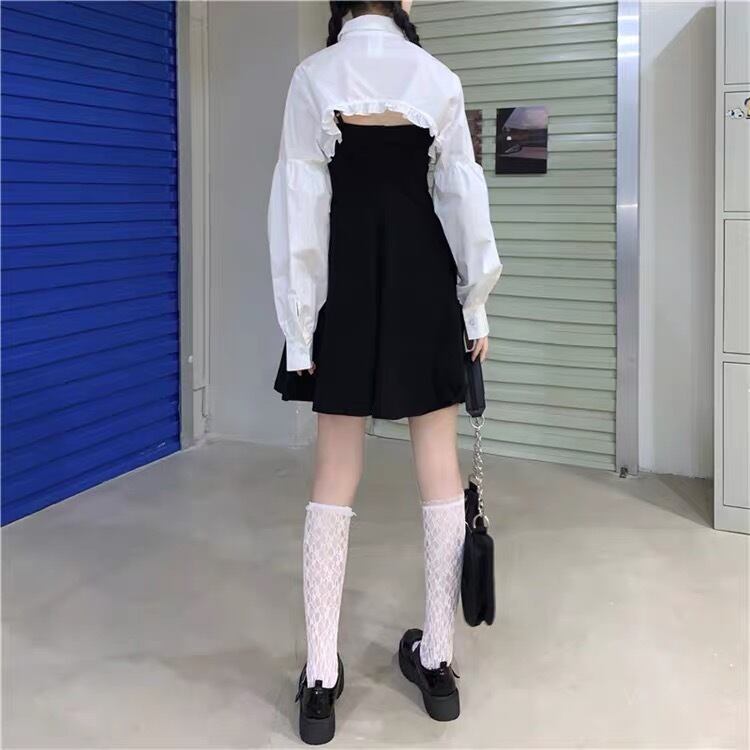 <送料無料> 韓国デザイン♡胸元チラリ♪ショート丈ブラウス ミニワンピース セクシー