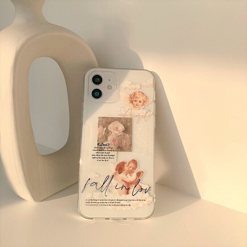 (送料無料)レトロなヨーロピアン風♡ iPhoneケース 天使 スマホケース 大人可愛い