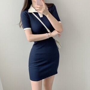 (送料無料)韓国デザイン♡綺麗め♡ カラーポロミニワンピース おしゃれ レディース