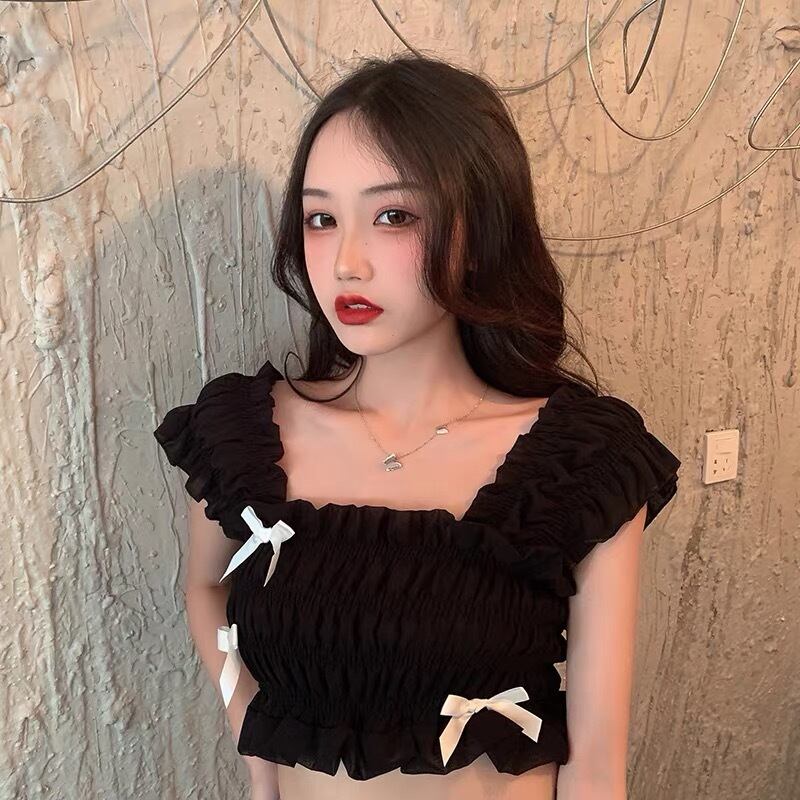 (送料無料)韓国デザイン♡ 愛されガール♡ リボン ギャザー キャミ トップス レディース