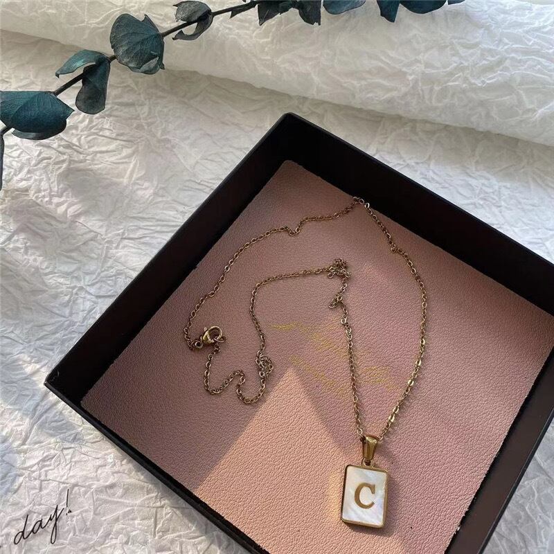 (送料無料)韓国デザイン♡天然シェル イニシャル オシャレ ネックレス