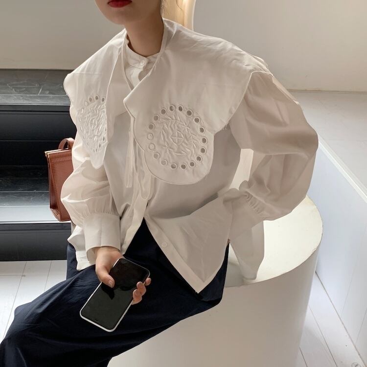韓国デザイン♡秋新品 ビッグカラーで小顔魅え♡ ガーリーブラウス トップス
