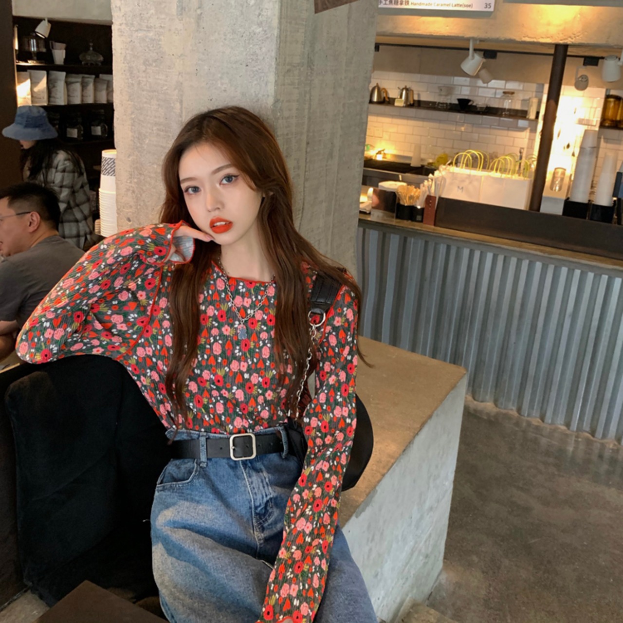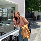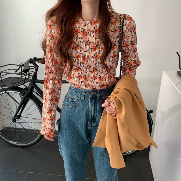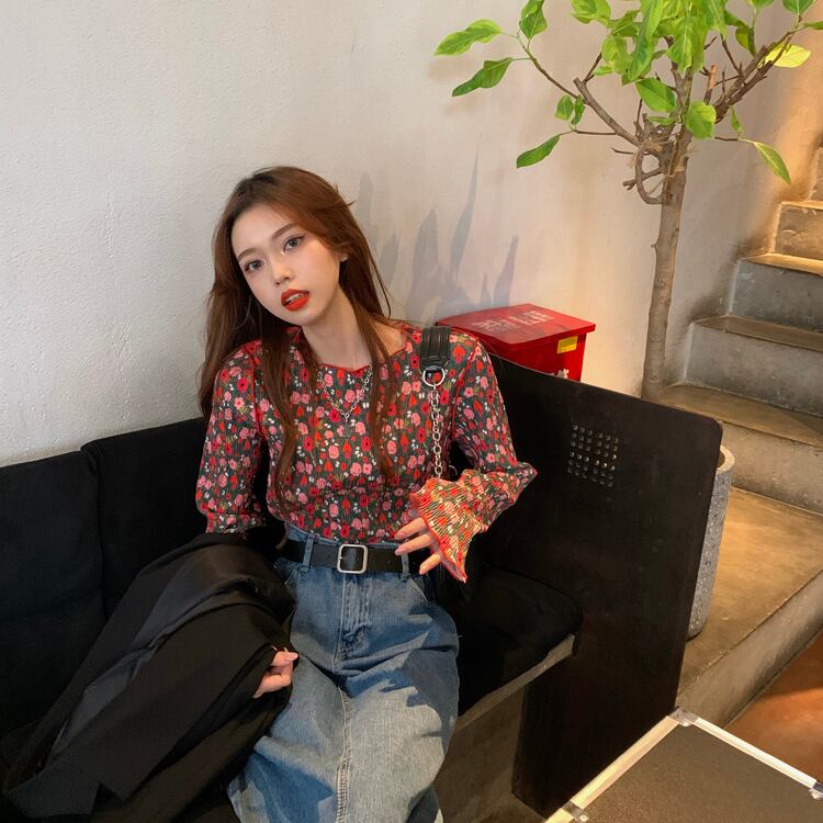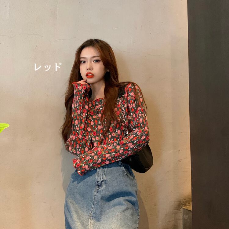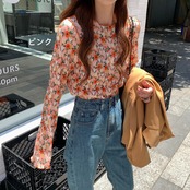 韓国デザイン♡レトロポップ♪フラワートップス♡レトロ ポップ フラワー 可愛い
