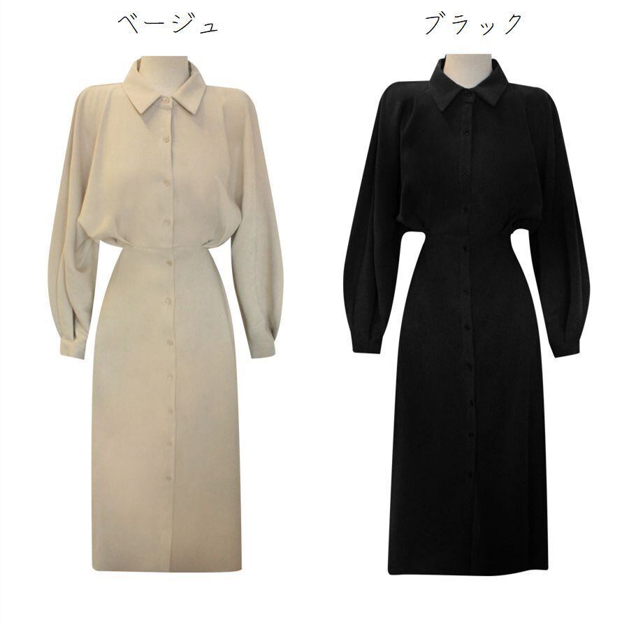 韓国デザイン♡一枚で上品に決まる♪ シャツワンピ とろみ ミモレ丈 無地 大人