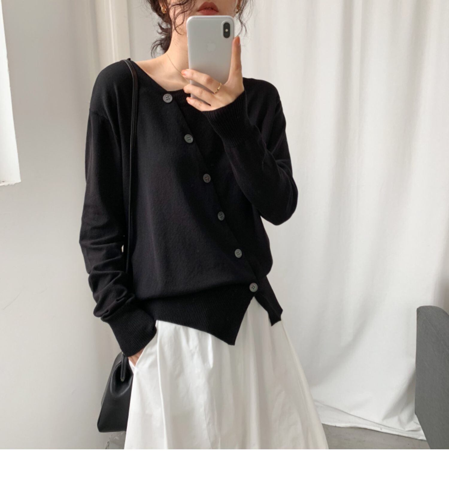 韓国デザイン♡ 斜めボタン クルーネック カーディガン アウター ニット