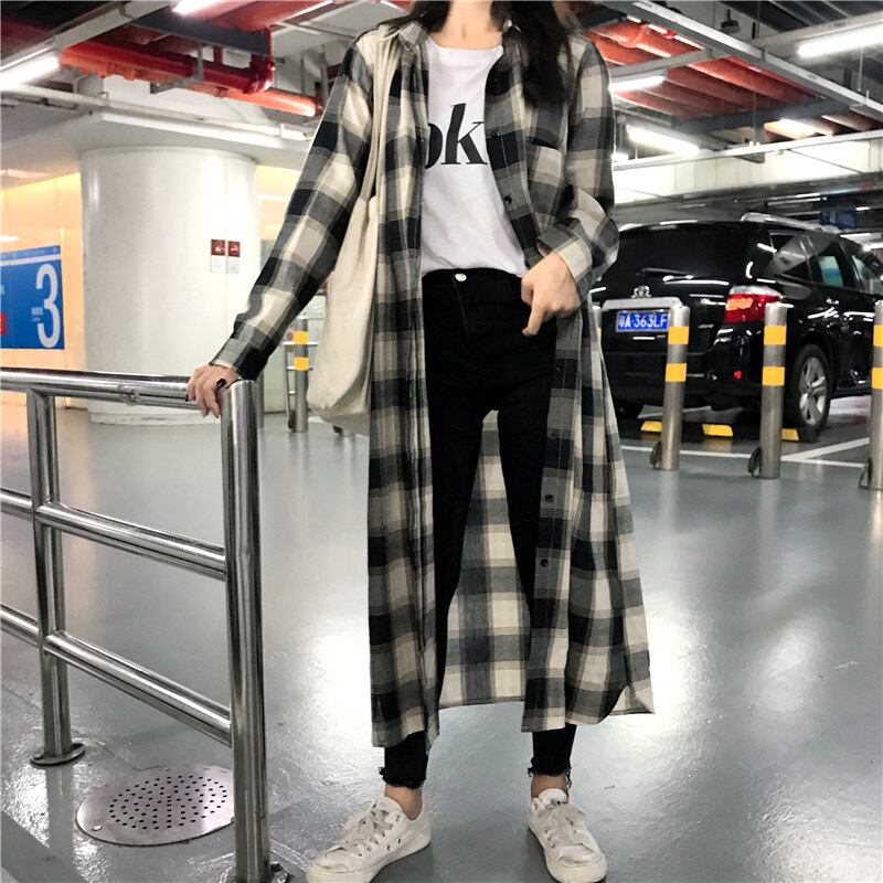 韓国デザイン♡ オーバーサイズ超ロングチェックシャツ