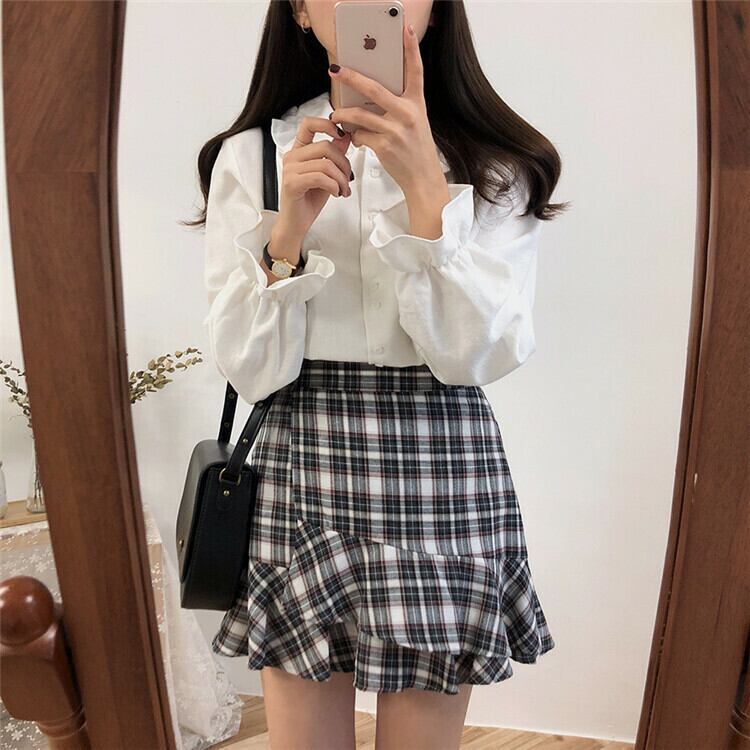 韓国デザイン♡ 着回し力抜群♡ レトロ ガーリー フリル襟 ブラウス