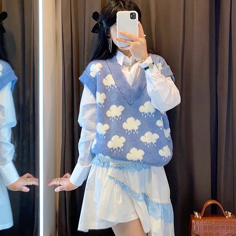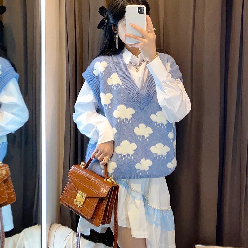 韓国デザイン♡ かわいい♡ 雲柄 Vネックベスト ジレ おしゃれ 大人女子