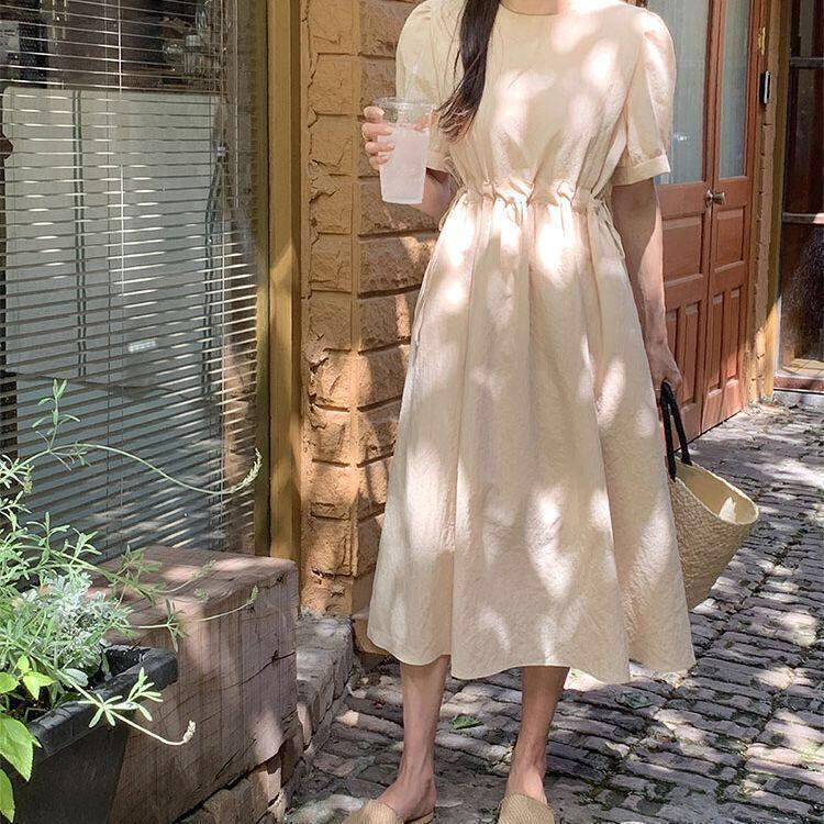 韓国デザイン♡ナチュラル可愛い♡ ワンピース リボン ミモレ丈 フェミニン