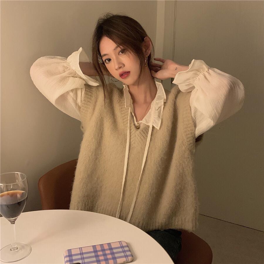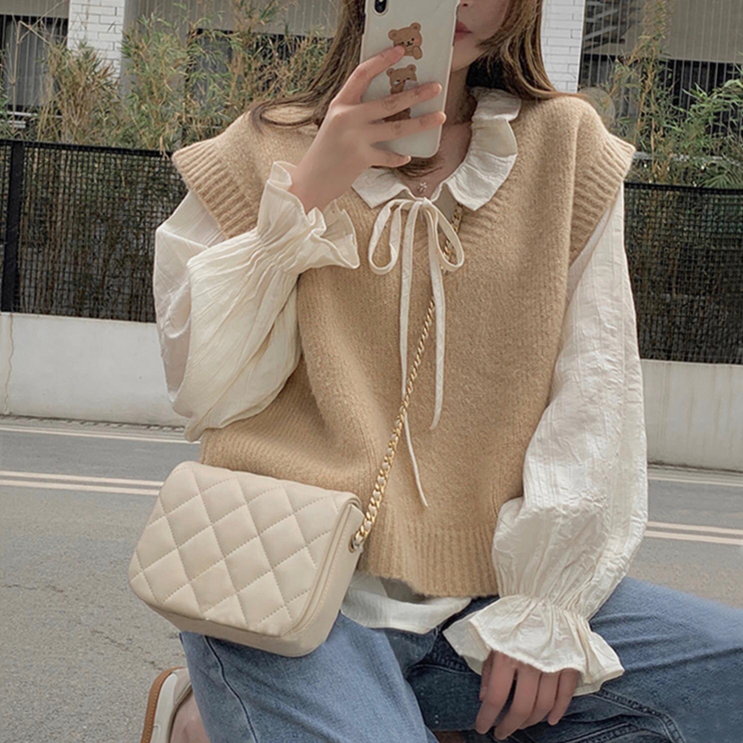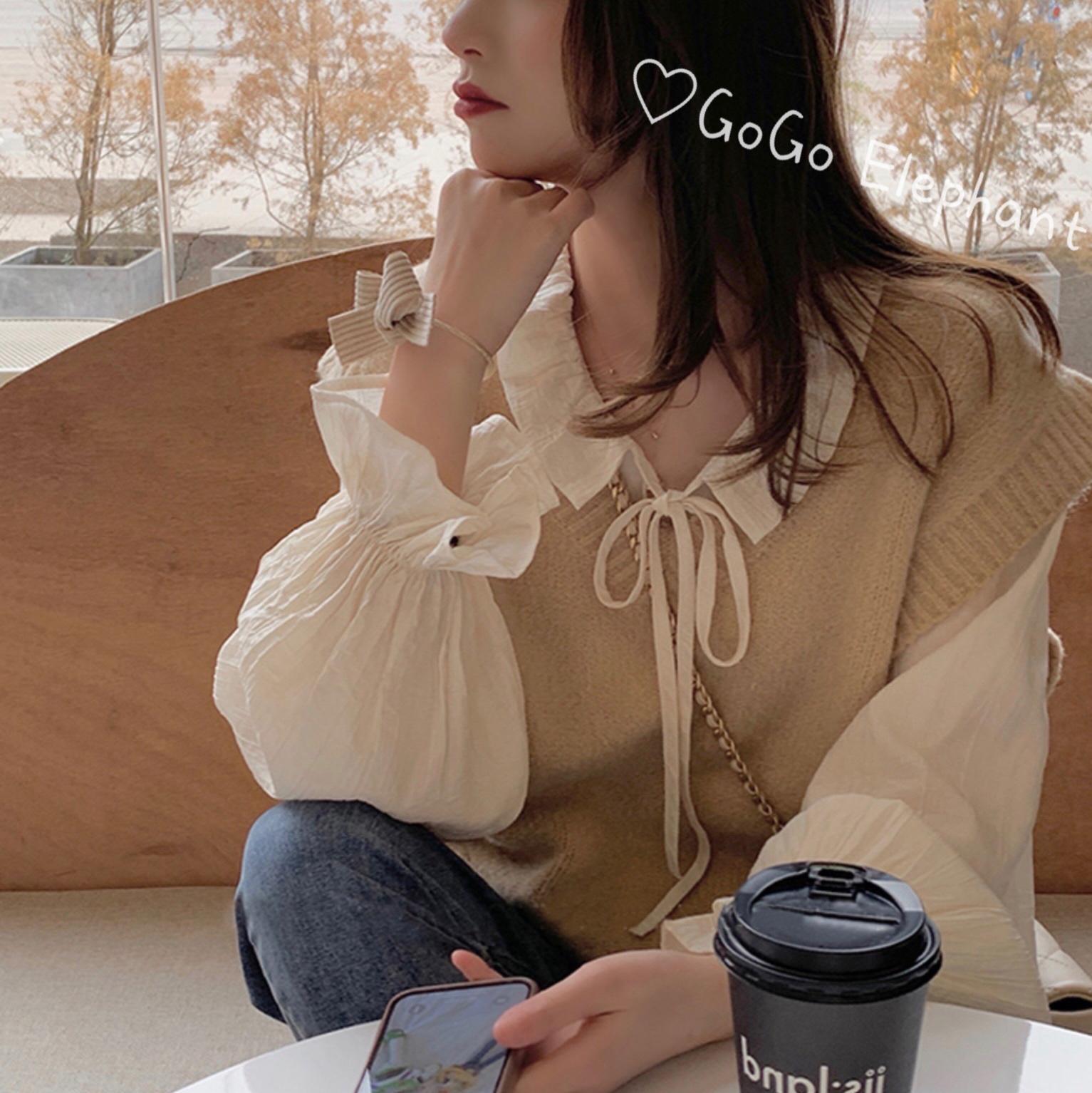 韓国デザイン♡愛され ナチュかわ ♪ フリル ブラウス ゆるっと ニット ベスト