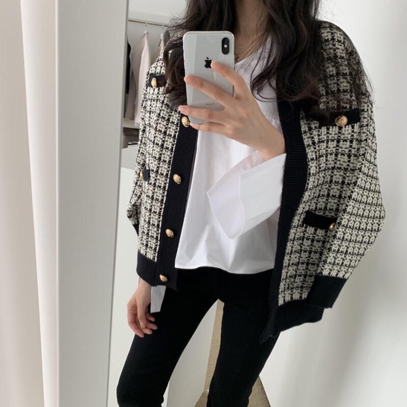 韓国デザイン♡エレガント♡高級感 カーディガン チェック シャネル好きに♡