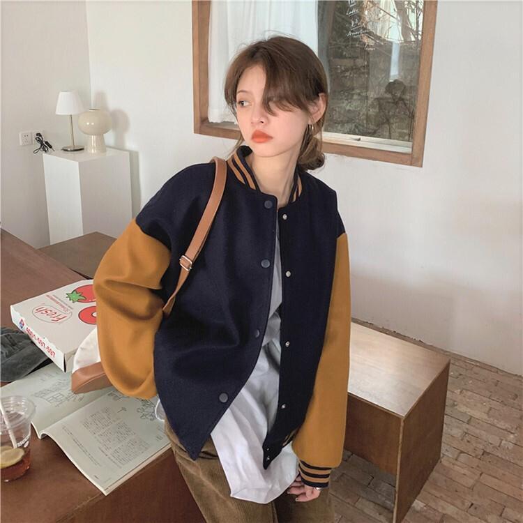 韓国デザイン♡CUTEな 秋カラー♪ スタジャン ブルゾン バイカラー 古着風