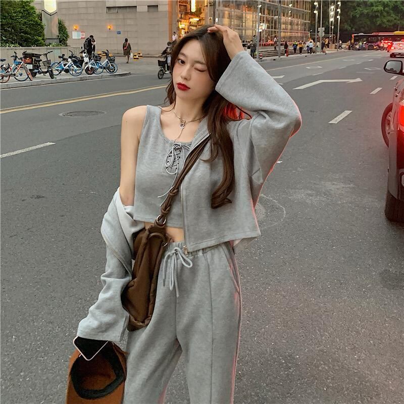 韓国デザイン♡【パーカー+キャミ】ゆるスポーティー♡ ジャージ スウェット キャミ スリットパンツ