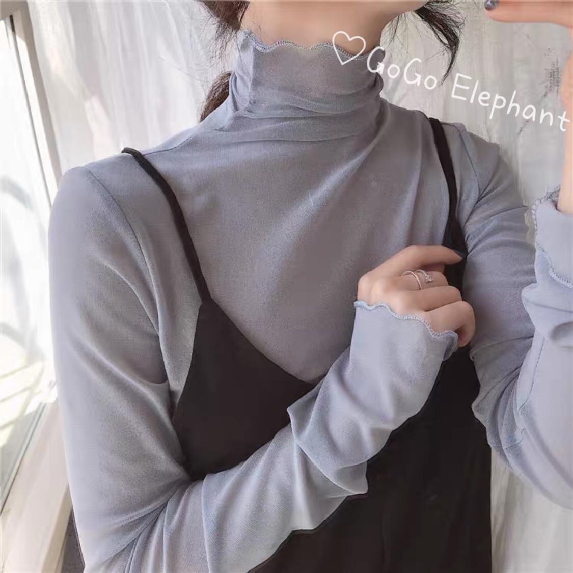 韓国デザイン♡シースルー♡ ハイネック ブラウス 柔らかい フリル セクシー