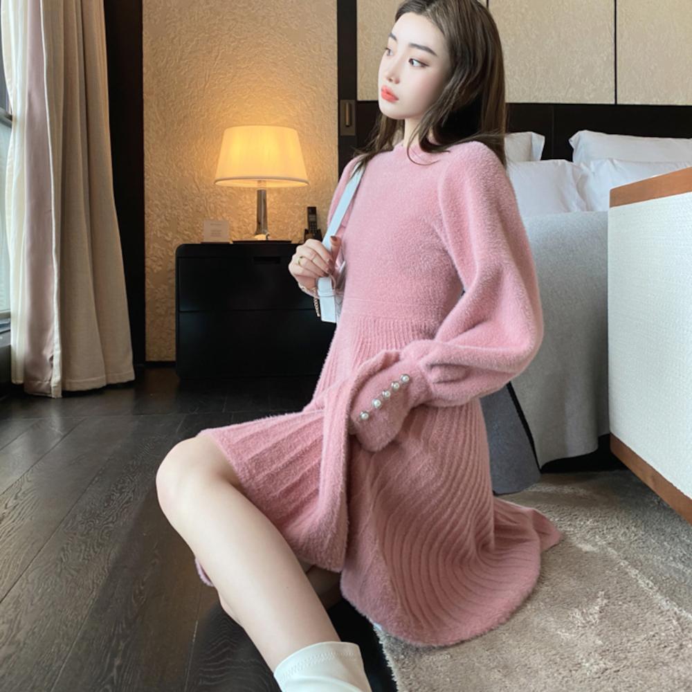 韓国デザイン♡ふわふわ フェイクファーフレアワンピース