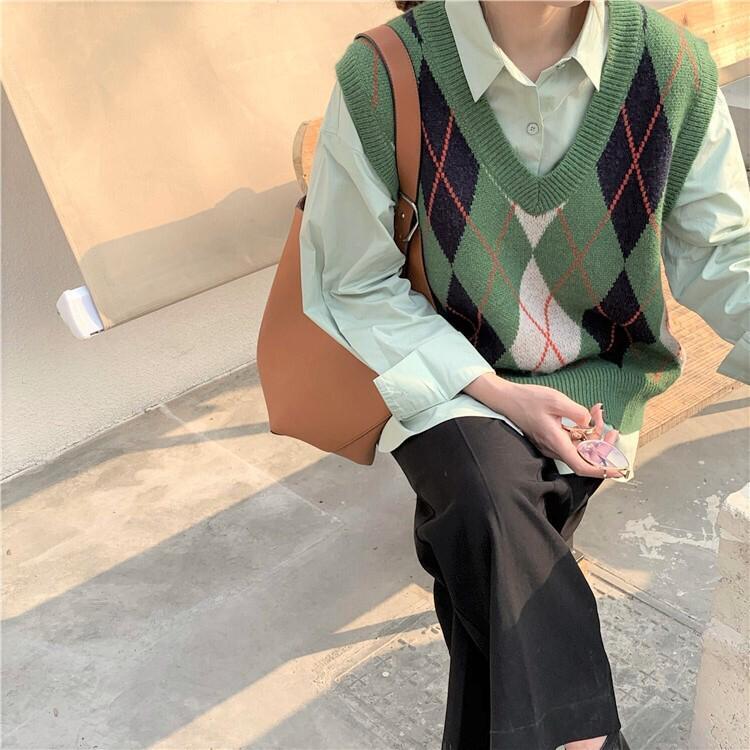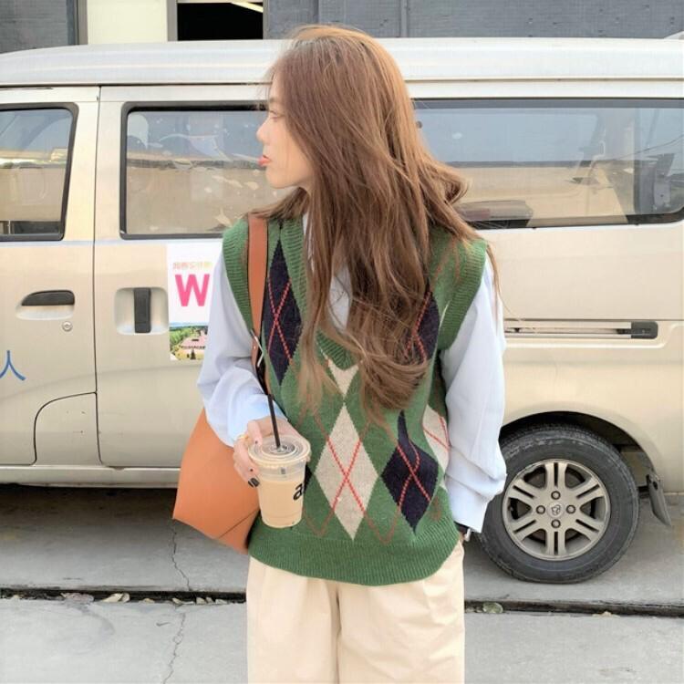 韓国デザイン♡ アイビールック に欠かせない♪ アーガイル柄 ニット ベスト
