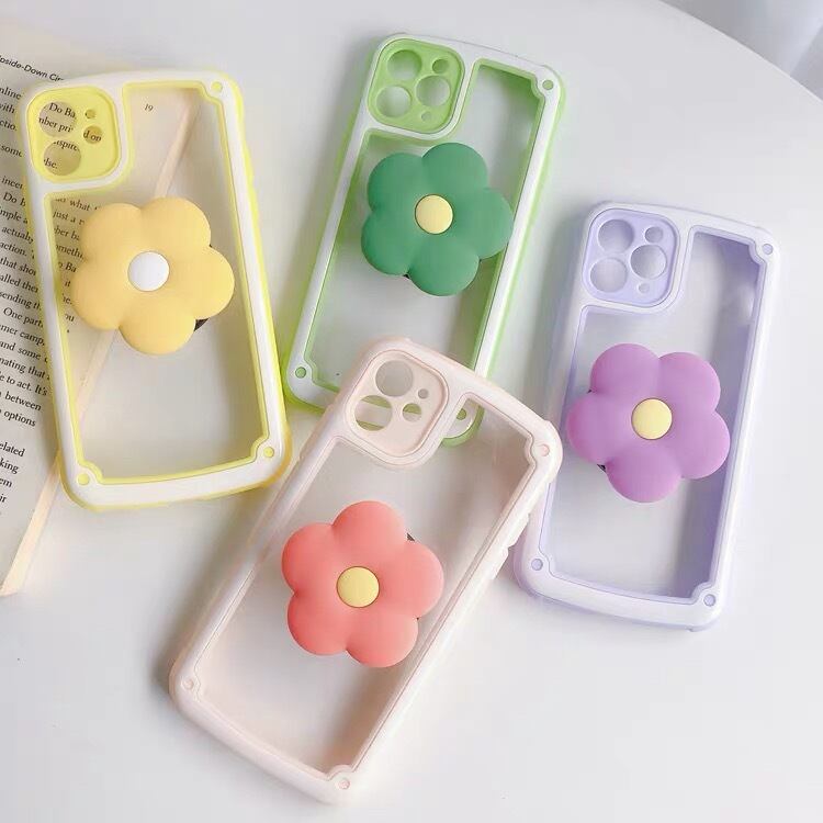 【iPhone 12Pro/イエロー・限定1点・即日発送可】韓国♡ ポップ フラワー♡ iPhone ケース ソケット クリア 可愛い