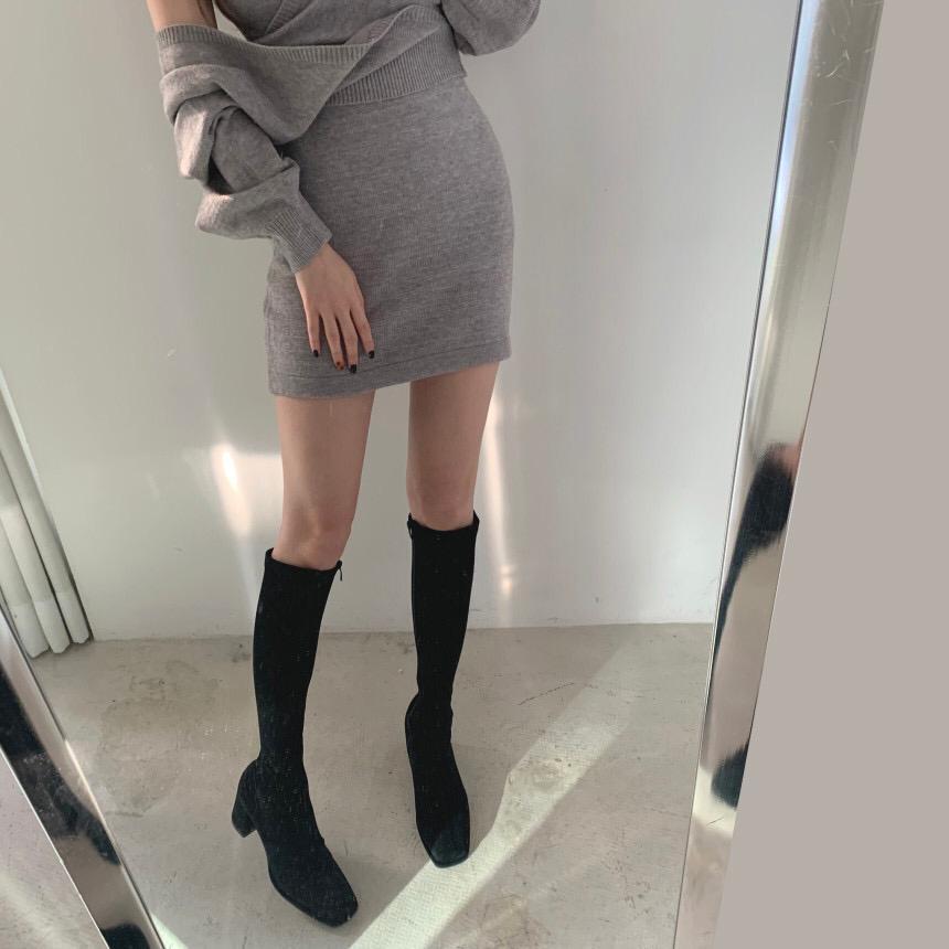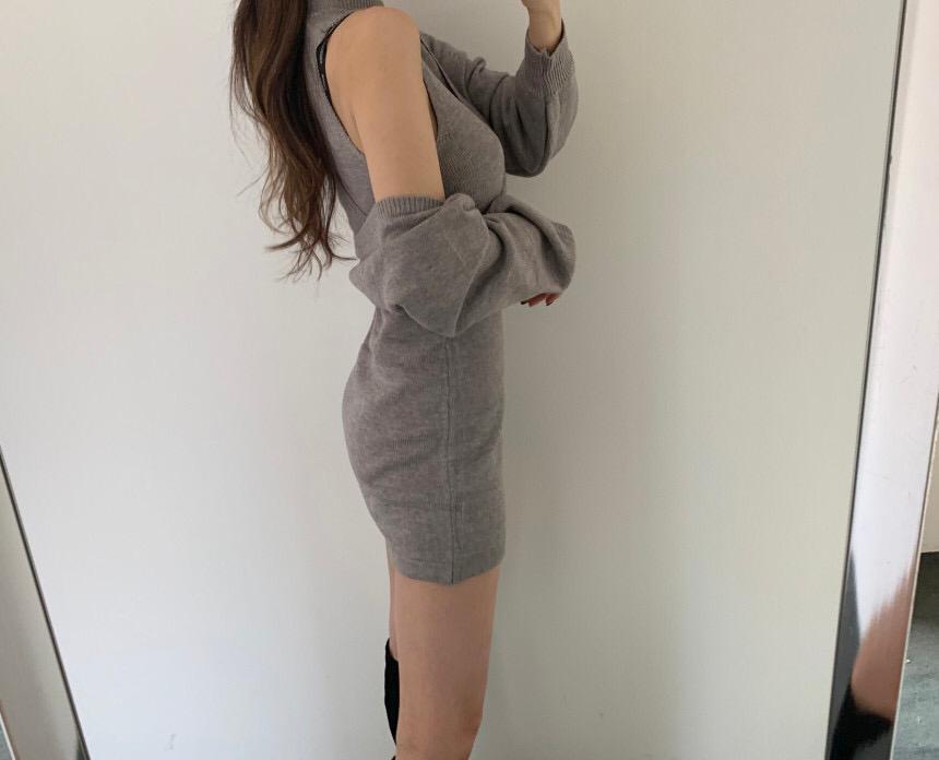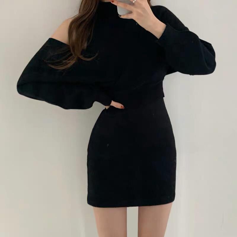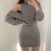・韓国デザインのタイトワンピースとニットのセットアップ♪