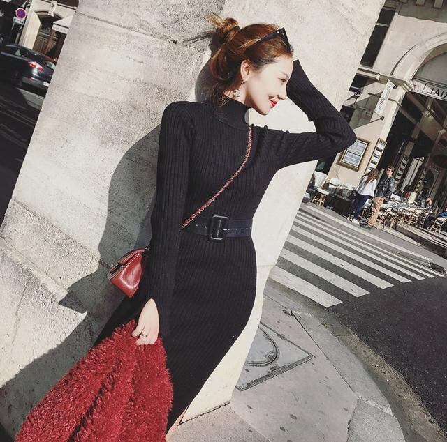 韓国デザイン♡ベルト付き♡着やせ 美しいライン ロング ニットワンピース 3色