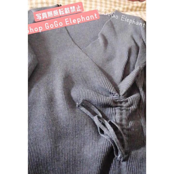 ・Vネックデザインで小顔効果抜群の上、ウエストあたりのギャザー入りがアクセントとなっています