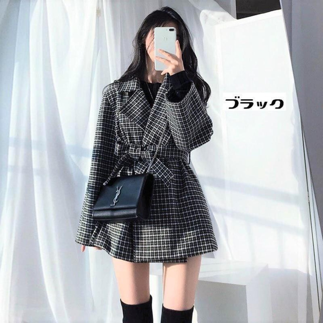 #韓国通販 #韓国ファッション #韓国コーデ きれいめ 大人可愛い メリハリ 女っぽ アウター♪ ラップコート チェック柄 総柄 高見え ウエストリボン 開襟 大人女子 モテコーデ デート