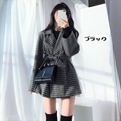 韓国デザイン♡メリハリ 女っぽ アウター♪ ラップコート チェック柄 総柄