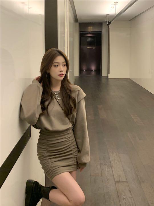 【グレー/サイズS・限定1点・即日発送可!】韓国デザイン♡シャーリング ♡タイトワンピース 着痩せ スタイルアップ