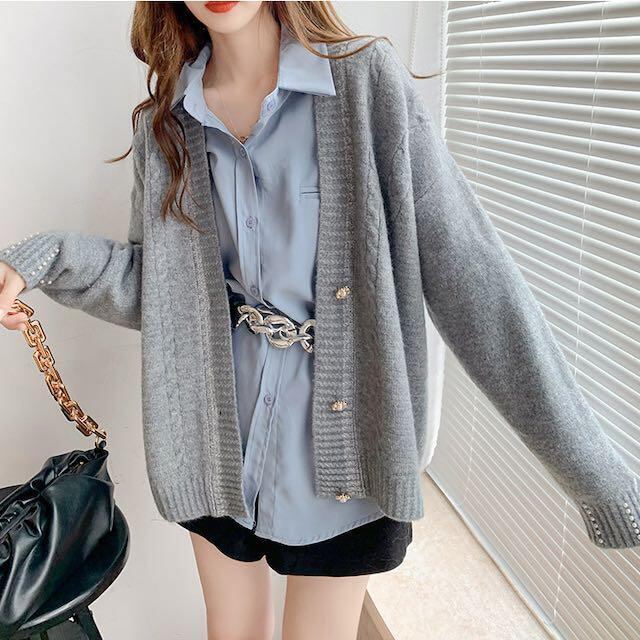 ☆★ 新品入荷 韓国デザイン♡今季マストバイ♡ よい質感 Vネック カーディガン ★☆