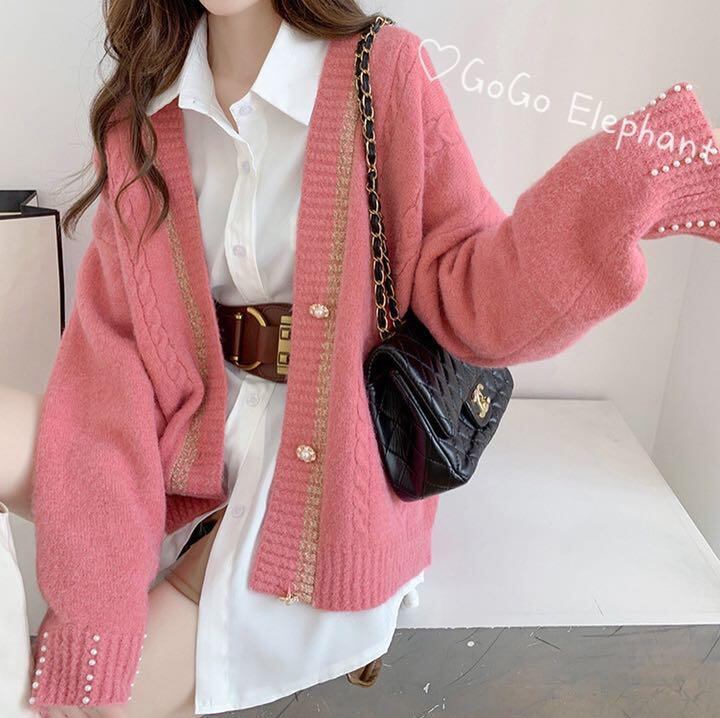 韓国デザイン♡今季マストバイ♡ よい質感 Vネック カーディガン