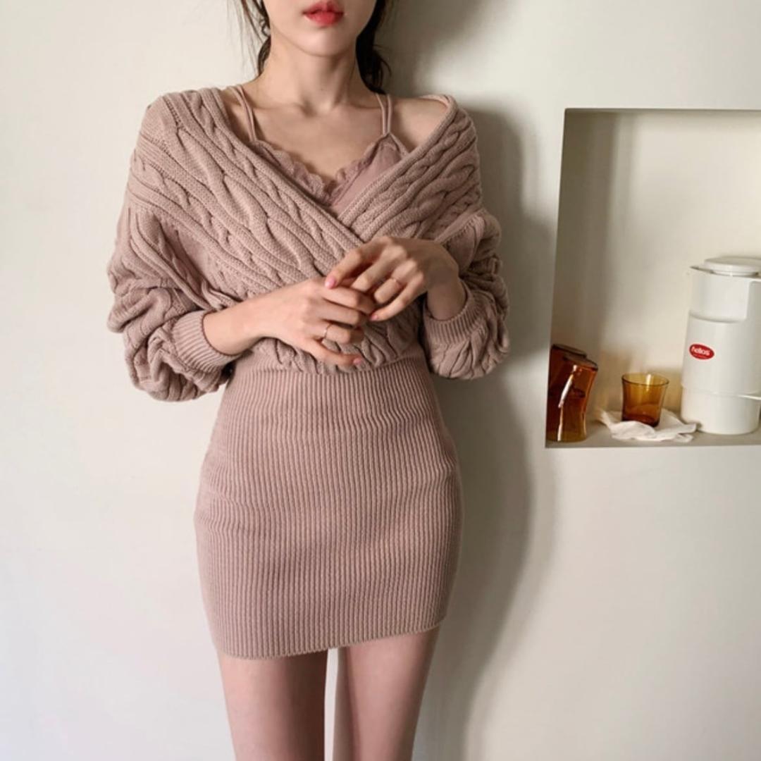 韓国デザイン♡ツイストニット ♡タイトワンピース 着痩せ スタイルアップ