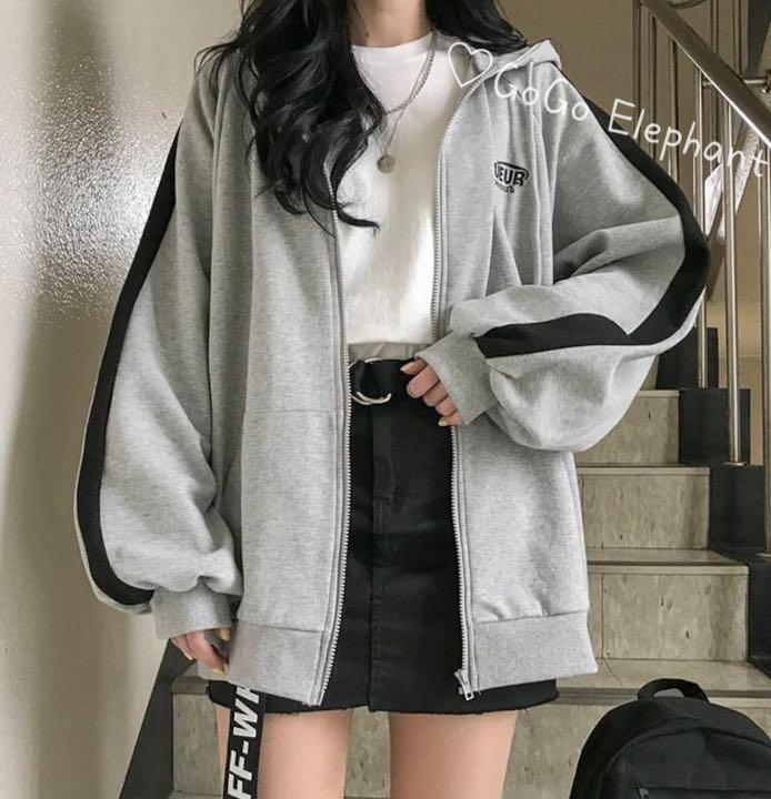 ☆★ 新品入荷 韓国デザイン♡ラインパーカー サイドライン フーディー ★☆