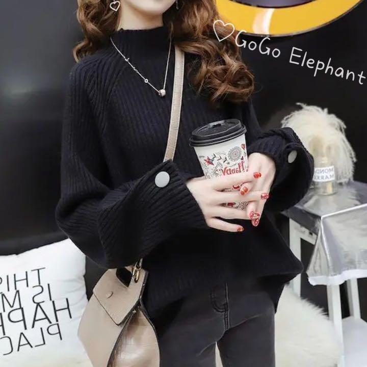 韓国デザイン♡超上品♪秋冬新品 斜めボタン掛け パフ袖 ロング ニットワンピース
