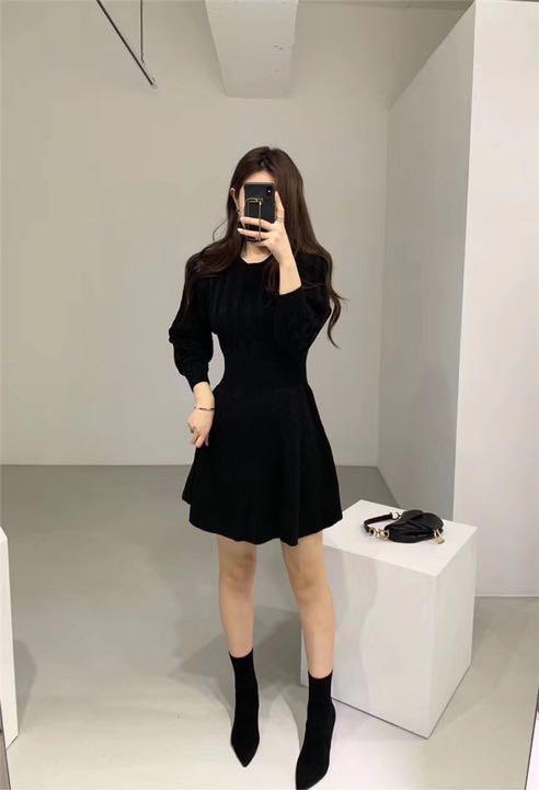 韓国デザイン♡ざっくり編み&ニットスカート ドッキングワンピース 華奢魅せ