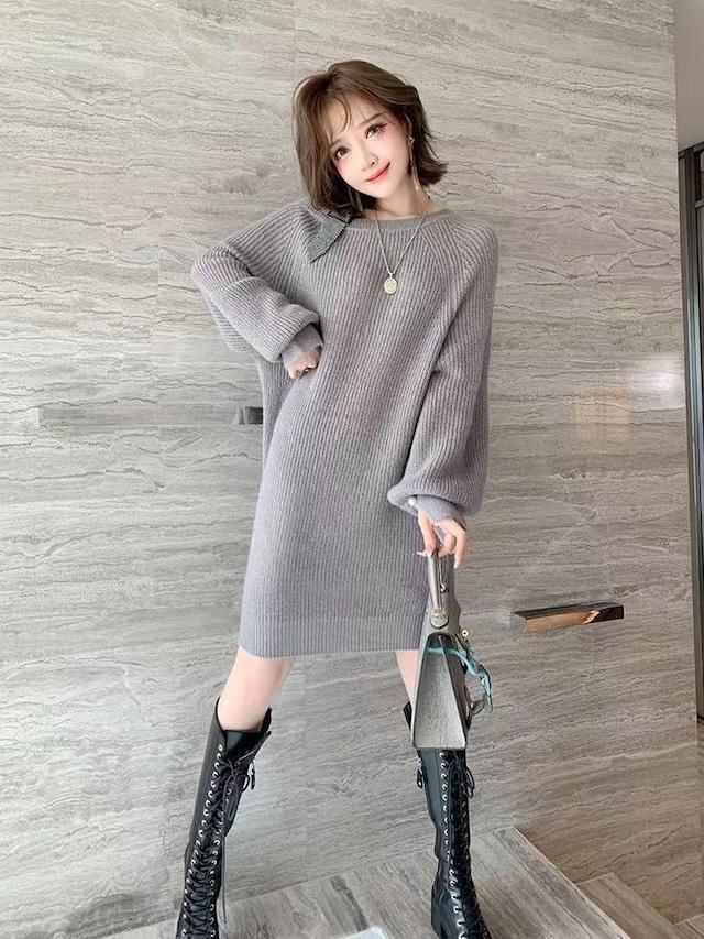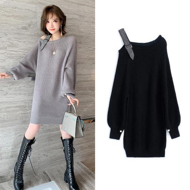 韓国デザイン♡ちょいセクシー 肩見せ ゆったり ワンピース オフショルダー