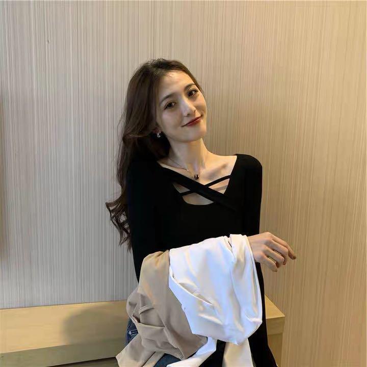 韓国デザイン♡ちょいセクシー♡アシメカット トップス 着心地よい