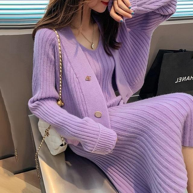 韓国♡着回し最強♡肌触りいいニット2点セット カーディガン+キャミワンピース