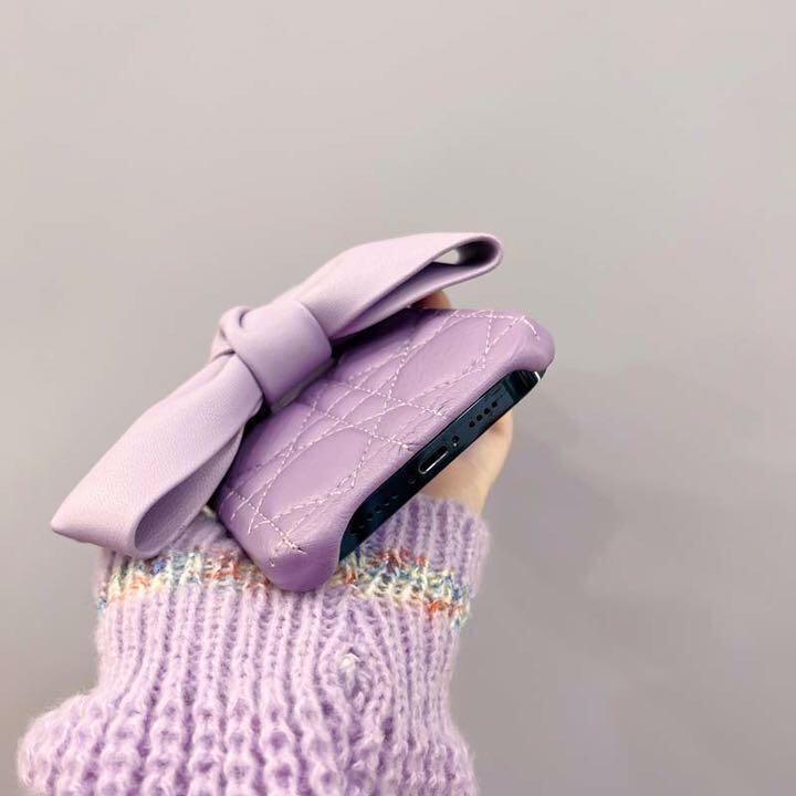 韓国デザイン♡ラベンダー リボン♡ パープル ハートチェーン iPhoneケース