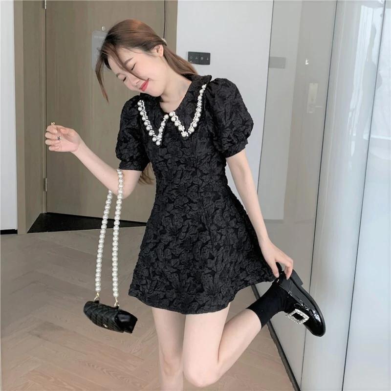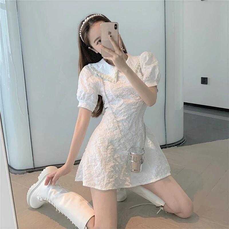 ☆★ 新品入荷 韓国デザイン♡くしゅカワ お嬢様ワンピ♪ ミニワンピース 花柄 襟 パール ★☆