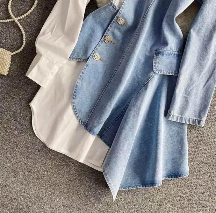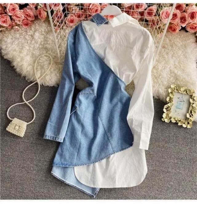 デニムとシャツの切り替えデザインで、