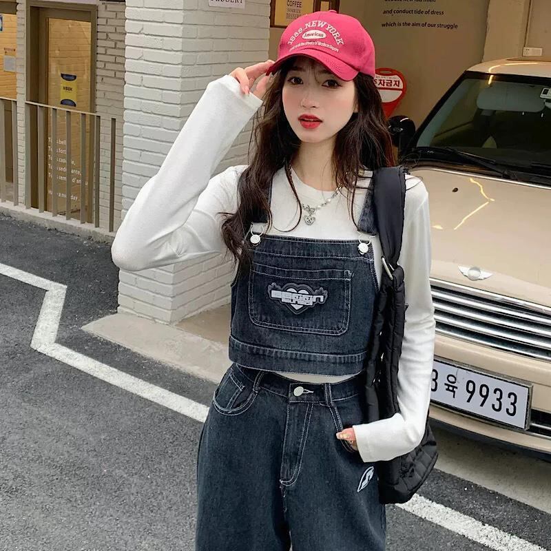 ☆★ 新品入荷 韓国デザイン♡大人気 スプリット オーバーオール 風 セットアップ デニム★☆