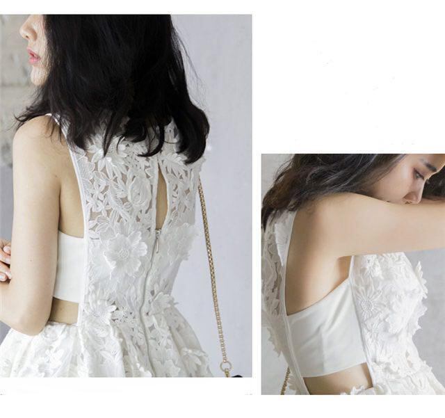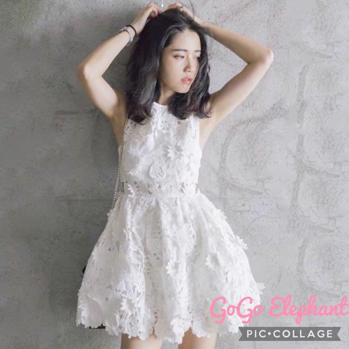 ☆★ 新品入荷 清楚系 ミニワンピース ホワイト 花柄 刺繍 ノースリーブ ★☆