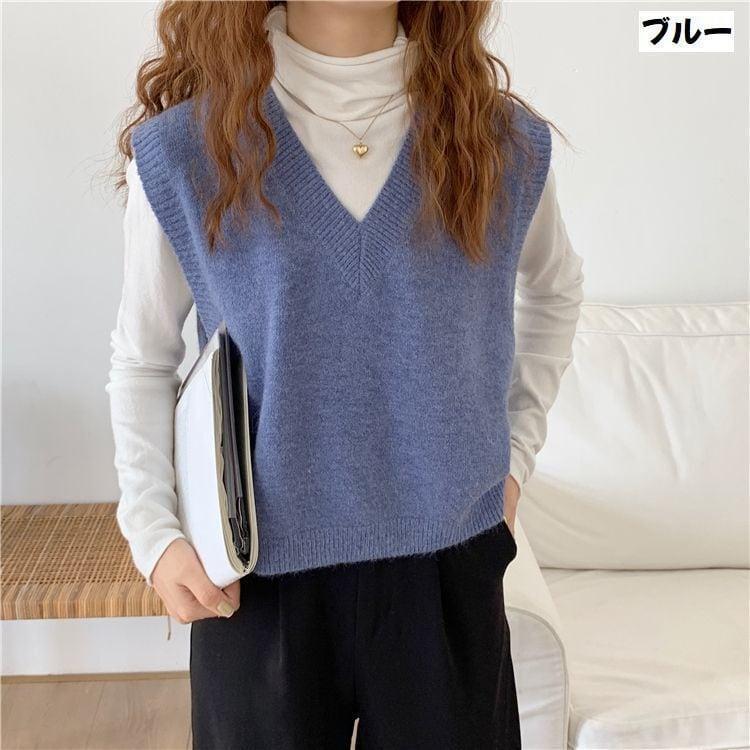韓国♡着回し抜群 定番 ベストニット シンプル Vネック 淡色 レイヤード