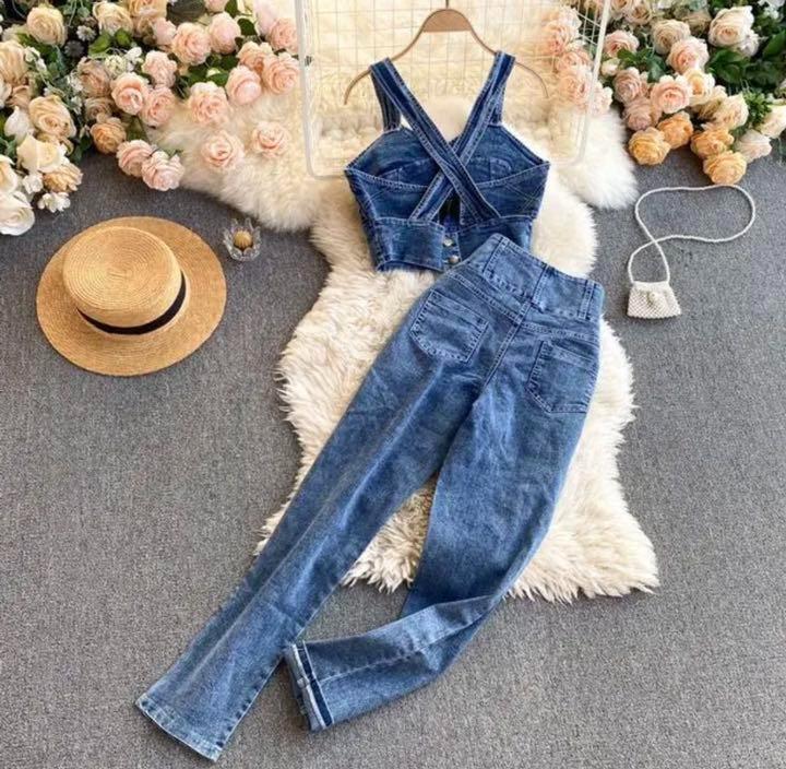 韓国デザイン♡おしゃれ セットアップ デニム ビスチェ パンツ ガーリー