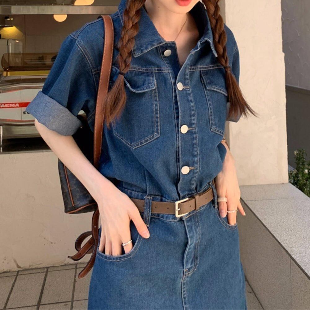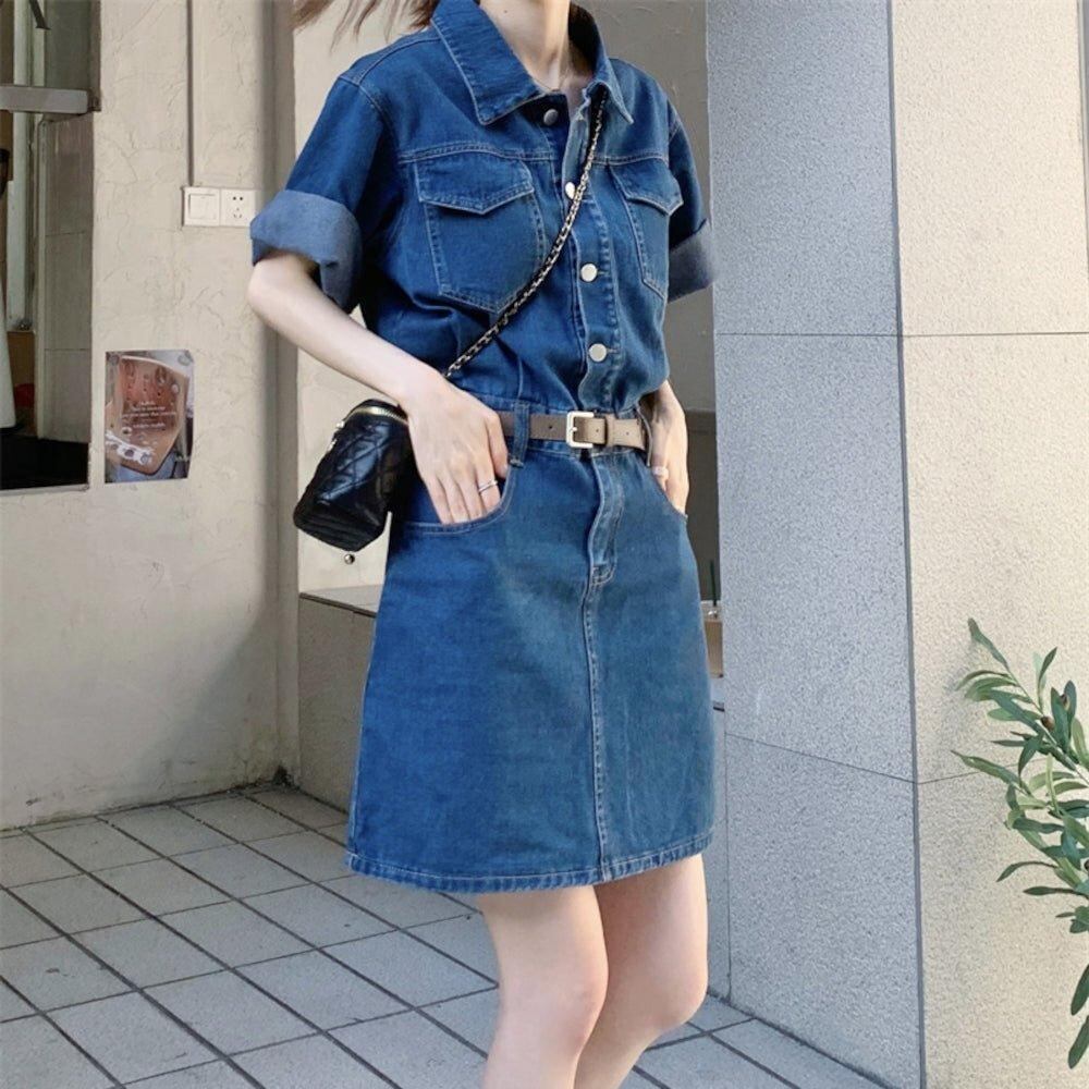 韓国デザイン♡ナチュラル可愛い♡ レトロデザイン デニムワンピース