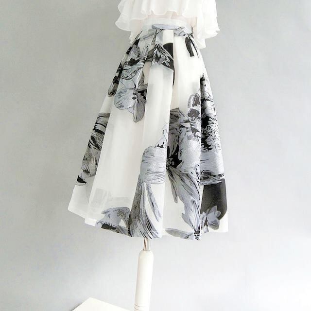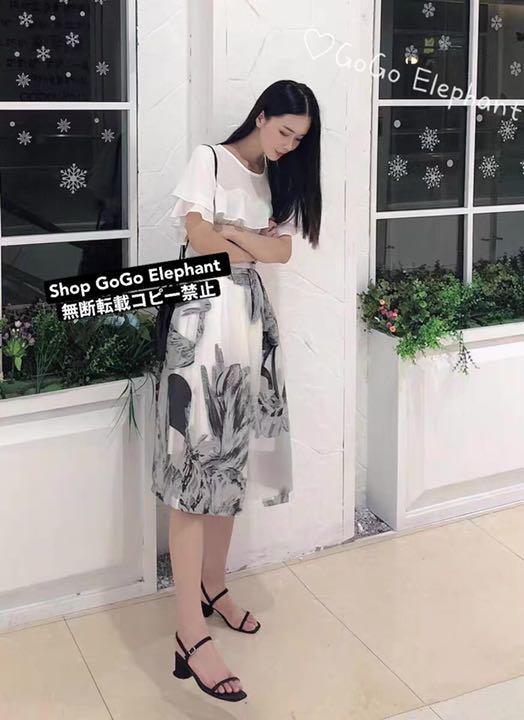 上品コーデ❤️美人度アップ フリルトップス プリントスカート セット 美しい