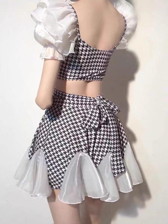 韓国デザイン♡水着 セパレート 千鳥柄 フレア 可愛い ガーリー スイムウェア