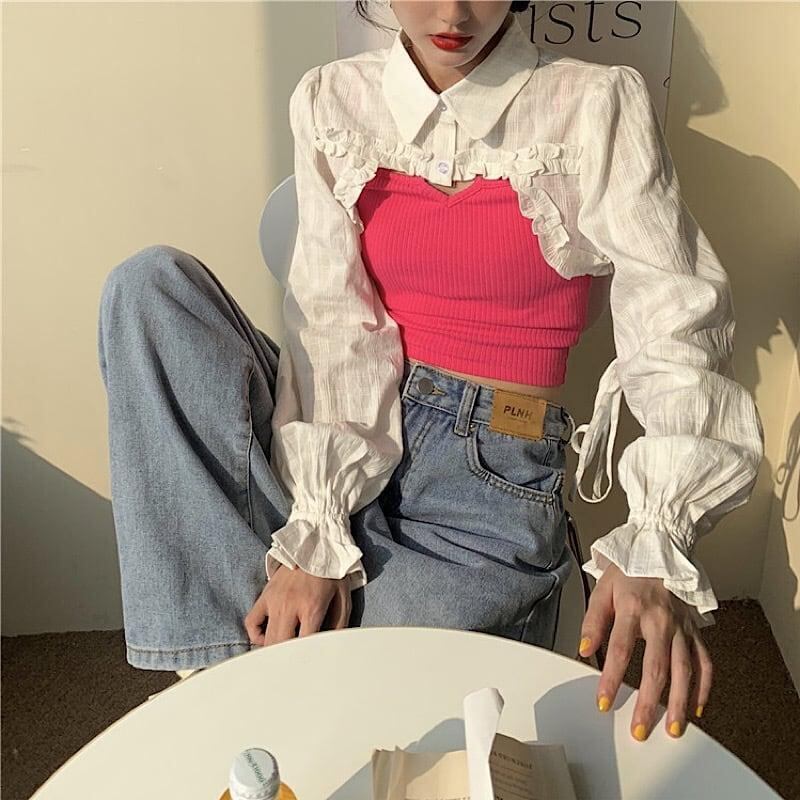 韓国デザイン♡甘めセクシー な レイヤード ♪ シャツ キャミソール セット
