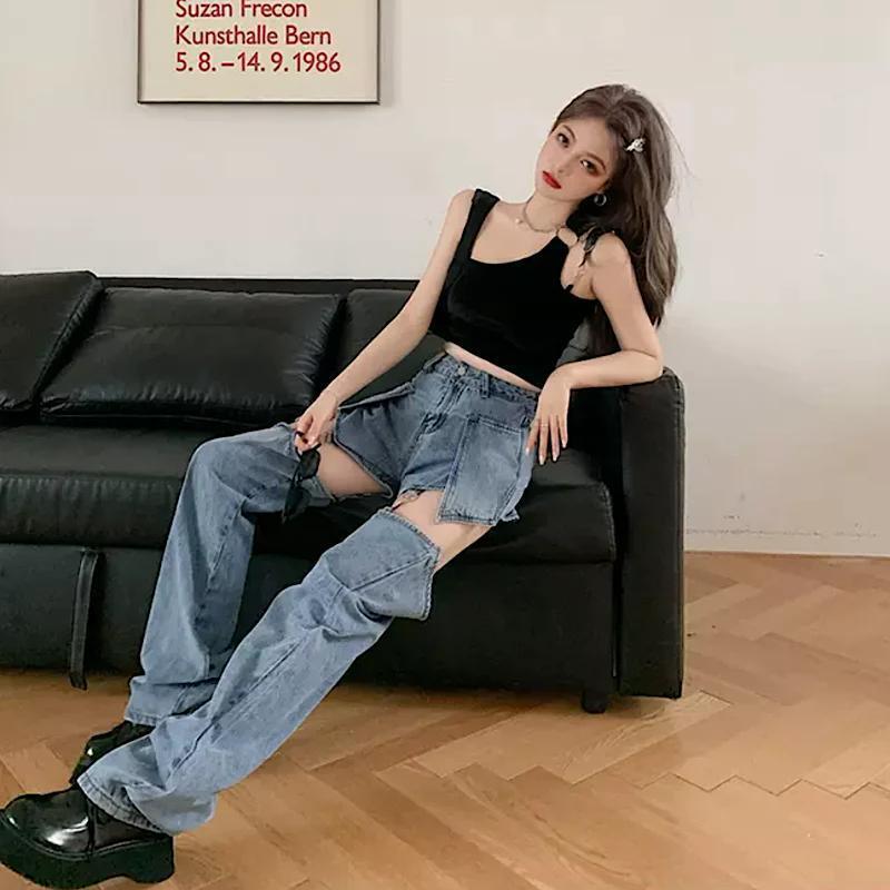 多くのK-POPアイドルも着用しているのを見かけるガーター付きデニムパンツ。